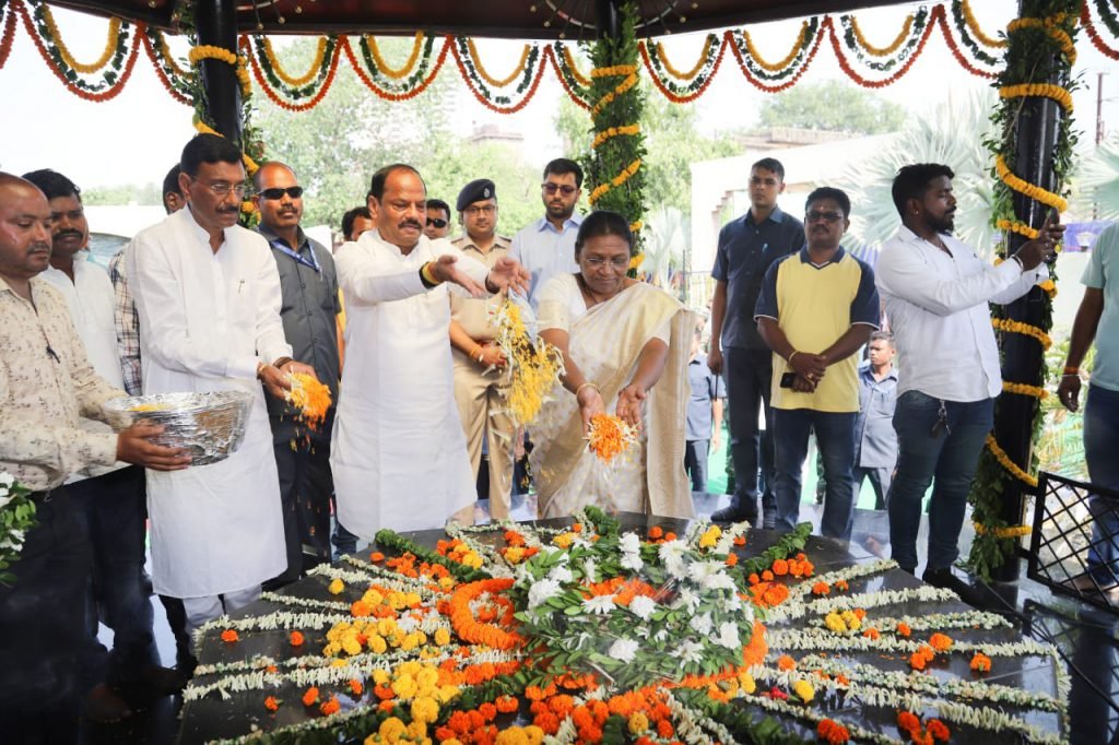 *कृतज्ञ राष्ट्र आज धरती आबा बिरसा मुन्डा की पुण्य तिथि पर नमन कर रहा* =================== झारखंड की राज्यपाल श्रीमती द्रौपदी मुर्मू और मुख्यमंत्री श्री रघुवर दास ने धरती आबा बिरसा मुन्डा की पुण्य तिथि पर रांची के कोकर स्थित उनके समाधि स्थल पर पुष्पांजलि अर्पित की। ततपश्चात् बिरसा मुन्डा चौक स्थित धरती आबा भगवान बिरसा मुन्डा की प्रतिमा पर पुष्प अर्पित झारखण्ड और समस्त देशवासियों की ओर से उनको नमन किया।