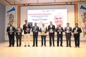 रांची: सरला बिरला विश्वविद्यालय में आज सरला बिरला स्मृति व्याख्यान के अंतर्गत प्रख्यात शिक्षाविद् एवं अनुसंधान वैज्ञानिक तथा नैक के पूर्व चेयरमैन डॉ. भूषण पटवर्धन मुख्य अतिथि के तौर पर उपस्थित रहे। इस अवसर पर उनकी लिखी किताब ‘जीनोम से ॐ तक‘ का विमोचन एसबीयू सभागार में किया गया। अपने संबोधन में डॉ. पटवर्धन ने शिक्षा के क्षेत्र में उदार मूल्यों के प्रसार हेतु बिरला परिवार की समृद्ध विरासत का जिक्र किया। इस वर्ष एनईपी 2020 की पांचवीं वर्षगांठ मनाए जाने की बात करते हुए उन्होंने इसे ऐतिहासिक नीति करार दिया। मानवता और सामाजिक विज्ञान के बगैर विज्ञान के अस्तित्व को उन्होंने अधूरा बताया।