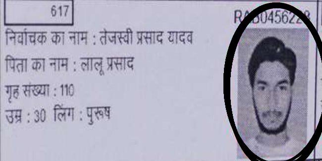 तेजस्वी यादव की मतदाता पर्ची पर गलत तस्वीर लगी है। उनके वोट डालने के पहले ये चूक पकड़ में आई है। मुख्य निर्वाचन पदाधिकारी श्रीनिवासन ने बताया कि आयोग ने सभी वीआइपी मतदाताओं के लिए विशेष ध्यान रखने का निर्देश दिया था। इसके बावजूद गड़बड़ी हुई है। इसके लिए जिम्मेदार अधिकारियों पर कार्रवाई की जाएगी। मुख्य निर्वाचन पदाधिकारी ने कहा कि इस गलती के कारण तेजस्वी यादव को मतदान करने में कोई परेशानी नहीं होगी। तेजस्वी के बड़री पहचान होने के कारण चुनाव आयोग ने इस तरह का मौका उनको दिया लेकिन आम आदमी को ऐसा मौका नहीं मिलता हैं