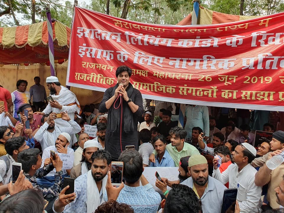 माॅब लिंंिचग की घटना के विरोध में राजनीतिक और सामाजिक संगठनों का धरना-प्रदर्शन रांची: झारखंड में बढ़ती हुई माॅब लिंंिचग की घटनाओं ने पुरे देश में भूचला ला दिया है। झारखंड की माॅब लिंंिचग की आग दिल्ली के जंतर तमंतर से लेकर रांची के राजभवन तक पहुंच चुकी है। मॉब लिंचिंग की घटनाओं के विरोध में रांची में राजभवन के सामने विभिन्न सामाजिक संगठन के लोगों ने एक दिवसीय धरना दिया। इसमें विपक्षी दलों के कई नेता भी शामिल हुए. इस दौरान सरायकेला की घटना की निंदा करते हुए दोषियों पर कठोर कार्रवाई की मांग की गई. धरना में यूपी के जाने- माने शायर और सहारनपुर से कां्रगेस के प्रत्याशी रहे इमरान प्रतापगढ़ी भी शामिल हुए ।इमरान प्रतापगढ़ी ने कहा कि जब संसद में मुस्लिम सांसदों के शपथग्रहण के दौरान बाकी सांसद श्रीराम का नारा लगाएंगे, तो बाहर मॉब लिंचिंग जैसी घटनाएं होंगी ही। यह लोकतंत्र पर हमला है, जो आने वाली नस्लों के लिए खतरनाक है. ये मॉब लिंचिंग नहीं, मॉबलाइज लिंचिंग है. इसके पीछे एक गिरोह काम कर रहा है। कांग्रेस नेता सुबोधकांत सहाय ने कहा कि मॉब लिंचिंग के मामलों पर सुप्रीम कोर्ट ने कानून बनाने का आदेश दिया है. राज्य सरकार को इस दिशा में पहल करनी चाहिए। जेवीएम नेता खालिद ख़लील ने कहा कि यह सोची समझी साजिश का नतीजा है। राज्य सरकार ऐसी घटनाओं को रोकने में समझ है। जेएमएम नेत्री और रांची विधानसभा क्षेत्र से चुनाव लड़ चुकी महुआ मांझी ने कहा कि झारखंड धार्मिक सौहार्द के लिए जाना जाता था. लेकिन वर्तमान सरकार वोट बैंक की राजनीति के लिए यह सब करा रही है. विकास के दावे तो हवा- हवाई हैं.बता दें कि गत 17 जून की रात को मृतक तबरेज अंसारी जमशेदपुर से सराईकेला स्थित अपने गांव कदमडीहा लौट रहा था. इसी दौरान धातकीडीह गांव में ग्रामीणों ने मोटरसाइकिल चोरी के आरोप में उसे पकड़ लिया और रात भर बांधकर पिटाई की. इसके बाद लोगों ने अगले दिन सुबह उसे पुलिस के हवाले कर दिया। पुलिस ने पहले उसका इलाज सदर अस्पताल में कराया, फिर शाम को जेल भेज दिया। 22 जून की सुबह तबरेज को जेल से गंभीर हालत में सदर अस्पताल लाया गया, जहां उसकी मौत हो गयी। मृतक के परिजनों ने उसके जिंदा होने का दावा कर उसे रेफर करने की मांग की जिसके बाद अस्पताल प्रशासन ने उसे जमशेदपुर के टीएमएच अस्पताल रेफर कर दिया. वहां भी डॉक्टरों ने तबरेज को मृत करार दिया। यहां से शव को वापस सरायकेला लाकर उसका पोस्टमॉर्टम कराया गया.मंगलवार को मृतक तबरेज की पोस्टमार्टम रिपोर्ट आयी. हालांकि इसमें मौत के स्पष्ट कारणों का पता नहीं चला. अब बिसरा जांच में इसका खुलासा होगा. अबतक इस मामले में 11 आरोपियों की गिरफ्तारी हो चुकी है। एसआईटी घटना की जांच कर रही है। इधर, रांची स्थित झारखंड हाईकोर्ट में