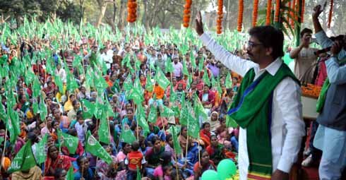 राजमहल: पूर्व मुख्यमंत्री हेमंत सोरेन ने कहा है कि भाजपा अमीरों और पूंजीपतियों की सरकार है और मूलवासियों से उनकी जमीन छीनकर पूंजीपतियों के हवाले करने की मंशा भाजपा सरकार में बैठे लेागों के मन में है। बरहेट प्रखंड के हेसाघुटू मैदान व तालझारी प्रखंड के गोढाइढाप फुटबॉल मैदान में हेमंत सोरेन ने चुनावी सभा को संबोधित किया. उन्होंने महागठबंधन प्रत्याशी विजय हांसदा के पक्ष में मतदान करने की अपील की. उन्होंने कहा कि भाजपा से झारखंड का कल्याण कभी नहीं हो सकता. छत्तीसगढ़ से आया हुआ भाजपा का व्यक्ति झारखंड का मुख्यमंत्री है, जो झारखंड के विकास की सही चिंता नहीं कर सकता. यह अमीरों व व्यापारियों की सरकार है. झारखंड के मूलवासियों का अस्तित्व जल, जंगल व जमीन से है. यदि जमीन ही हाथ से निकल गयी, तो लोगों के जीने का सहारा ही समाप्त हो जायेगा. वहीं, तालझारी प्रखंड क्षेत्र के गोढाइढाप फुटबॉल मैदान में सभा को संबोधित करते हुए श्री सोरेन ने कहा कि भाजपा सरकार आदिवासी विरोधी है.