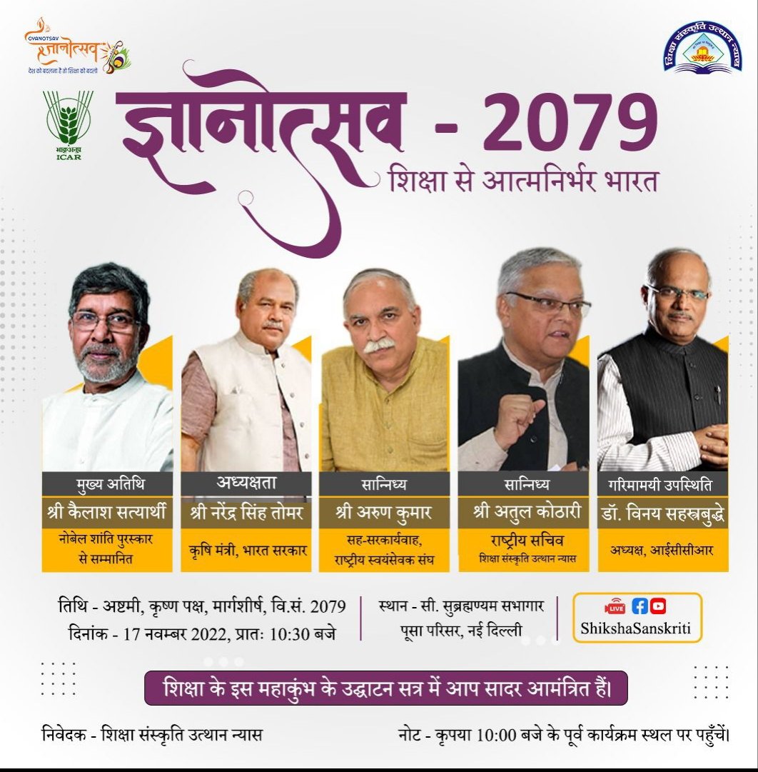 प्रासंगिक और गुणवत्तापूर्ण शिक्षा प्रदान करने से संबंधित महत्वपूर्ण मुद्दों पर विचार-विमर्श एवं समाधान प्रदान करने के लिए विद्यालय, उच्च एवं व्यावसायिक शिक्षा के छात्रों, शिक्षकों एवं शिक्षाविदों की भागीदारी के साथ ‘ज्ञानोत्सव’ का आयोजन किया जाता है। इस बार ‘ज्ञानोत्सव’ में विशेषज्ञों और छात्रों के साथ-साथ उनके अभिभावक भी हिस्सा ले रहे हैं, जो भारत में आवश्यक शैक्षिक सुधारों के लिए अपने सुझाव प्रस्तुत करेंगे। शिक्षा से छात्र, शिक्षण संस्थान एवं देश आत्मनिर्भर बने, इस पर ‘ज्ञानोत्सव-2079’ के दौरान विशेष रूप से चिंतन किया जाएगा।